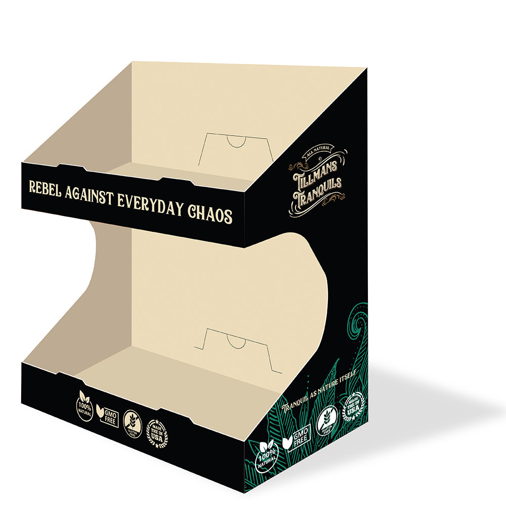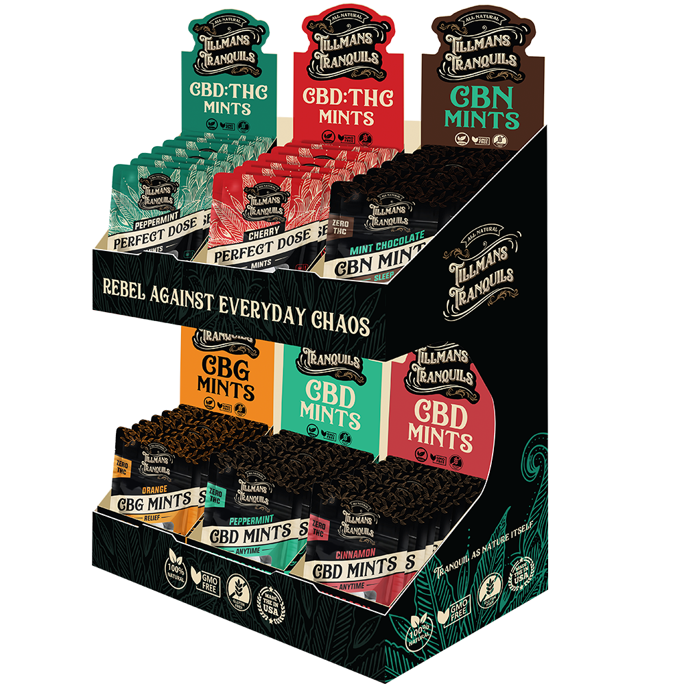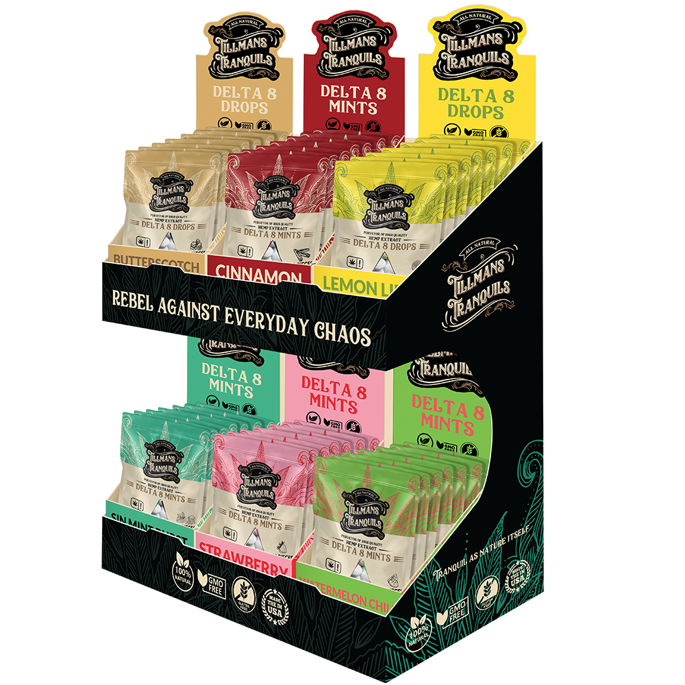 This display tower can be used to display Mints, Syrups, Gummies, Roll Ons, Pre-Rolls, or any combination of our products.